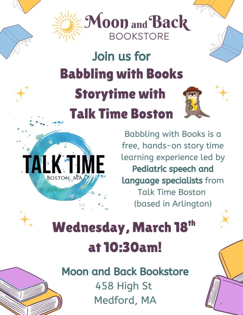 Join Moon and Back Bookstore for Babbling with Books, a free, hands-on storytime experience led by pediatric speech and language specialists from Talk Time Boston. Designed to support early language development in a playful and engaging way, this interactive program blends stories, movement, and communication strategies that families can take home and use every day.