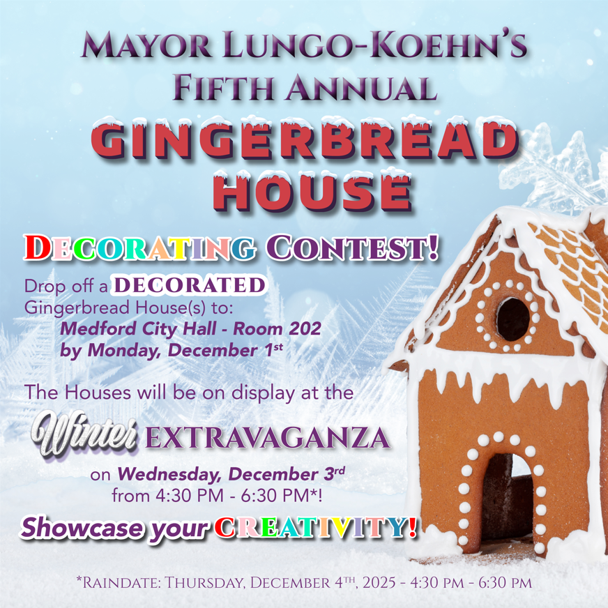 Show off your creativity and holiday spirit by submitting a decorated gingerbread house for Mayor Lungo-Koehn’s annual contest!
