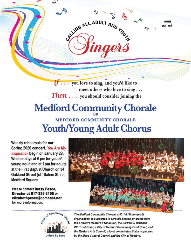 Join the Medford Community Chorale for an uplifting evening of music at their Spring 2026 concert, You Are My Inspiration. Featuring adult and youth voices united in song, this special performance celebrates connection, encouragement, and the power of community through a diverse and inspiring choral program.